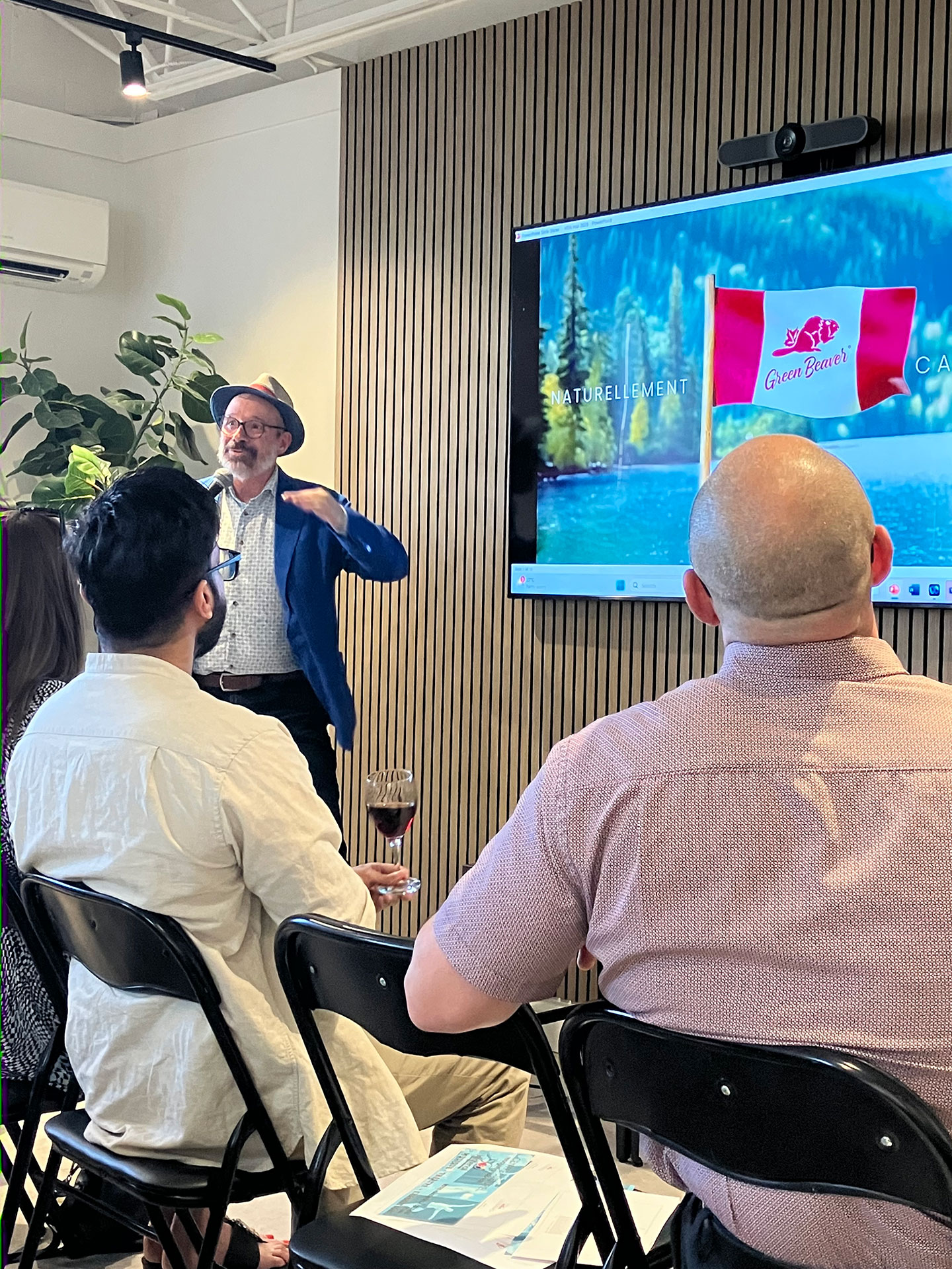 Our guest speaker, Alain Ménard — co-founder and president of The Green Beaver Company and Fromagerie des TroisRapides, as well as an HIIA board member — emphasized the importance of buying local in light of new tariffs imposed by the United States. He shared the story behind The Green Beaver Company, the meaning of its logo, and the benefits of its natural products. Despite economic challenges, these tariffs have significantly boosted the popularity of his Canadian products versus similar American products, illustrating the business potential for Canadian companies. Both The Green Beaver Company and Fromagerie des Trois-Rapides focus on natural and eco-friendly products, which are at the core of their mission.